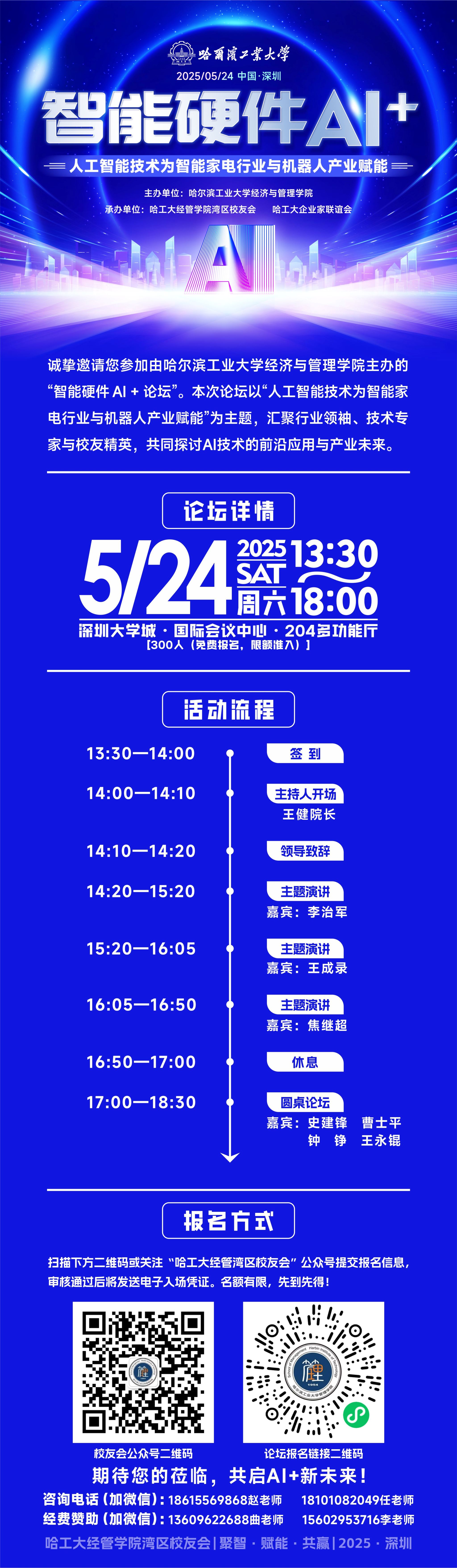 深圳校友会,汇聚行业领袖、技术专家与校友精英,倾力打造 “智能硬件 AI + 论坛”,共同探讨AI 技术在智能家电和机器人产业的商业化融合路径与全球化机遇,为粤港澳大湾区抢抓新一轮科技革命和产业变革战略性机遇贡献真知灼见。论坛详情如下。