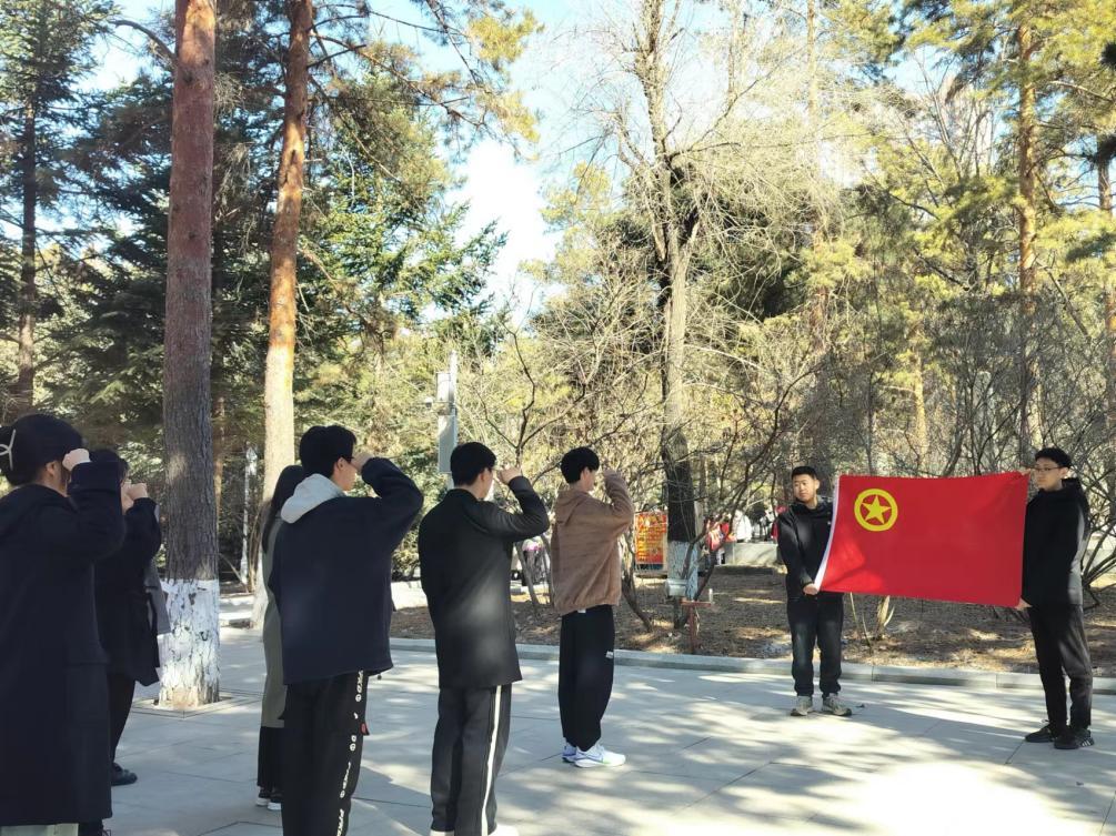 全体人员在陵园墓前整齐列队,默哀悼念。学生会组织部司起赫同学作为学生代表发言,“作为新时代青年,必将深刻铭记历史,发扬爱国主义精神,从先烈的英雄事迹中汲取前进力量,以实干书写无愧于伟大时代的绚丽篇章。”随后,学生会素质文化中心吴思宏同学领誓,重温入团誓词。随后同学们自行参观烈士陵园,进入烈士纪念馆聆听先烈的英勇事迹。