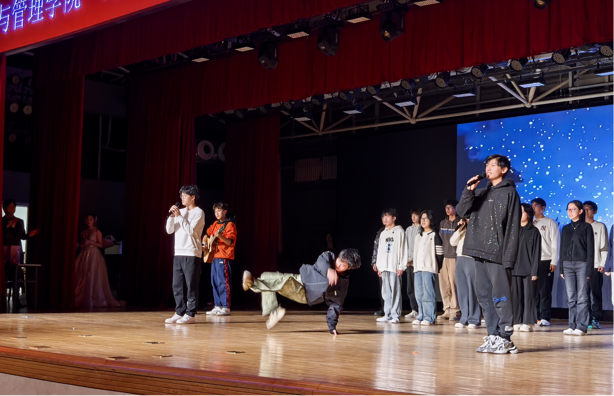 学子的艺术才华与勃勃生机,大家在精彩纷呈的节目中体悟家国情怀,在灯光璀璨中感受时代召唤。希望广大经管学子以此为始,积极向上、奋发作为,让青春在全面建设社会主义现代化国家的火热实践中绽放绚丽之花。